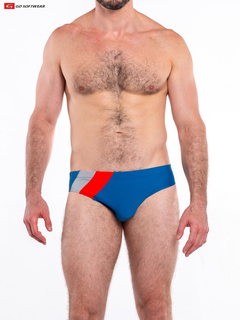 The Napoli swim trunk brings classic 1950s and 1960s male bodybuilder posing trunks into the modern era, designed to showcase your physique with undeniable style. This one-piece swimsuit features a comfortable 1” covered waistband with inner drawcord for a secure fit, a 4 ½” outer side seam and striking color-blocking in vibrant shades. The full-cut silhouette offers both style and confidence, making it ideal for those who appreciate timeless design with a contemporary edge. Fabric Content: 80% nylon 20% spandex Made in Downtown L. A., Ca fashion District Machine or hand wash and air dry...