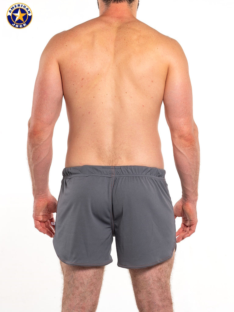 Experience superior comfort and performance with these distinctive workout shorts from AMERICAN JOCK. This garment features an 11” outer side seam and hi-cut leg design, they provide true short length for unrestricted movement during intense exercise. A built-in jockstrap, non-removable made in cotton/lycra jockstraps offer secure support without sacrificing fit. The 1 ½” waistband includes an inner drawcord, allowing you to customize your comfort level. This design is finished with the signature A J tab on the outer left side seam, guaranteeing authentic American Jock quality.