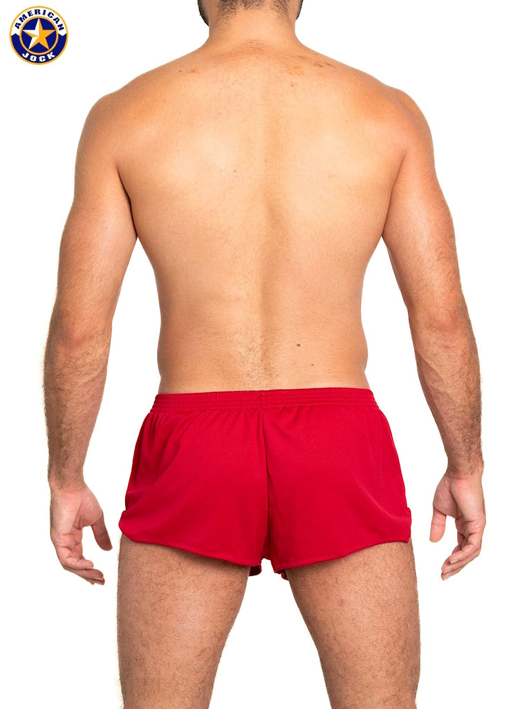 This popular and best-selling short design by American Jock Label is a favorite with jogging/long distance runners and gym buffs. The A J ultra-running short is created with a 6-inch outer and 1 ½ inch inner seam, ideal length and cut for hard core fitness buffs. This garment is super lightweight with a 1 inch covered elastic waistband as well as A J tab sewn on the outer left side for a sporty look.